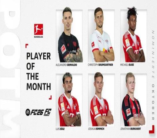 北京時間10月29日,德甲官方公布了10月最佳球員的候選名單,其中格里馬爾、奧利塞、路易斯-迪亞斯、基米希等人在列。