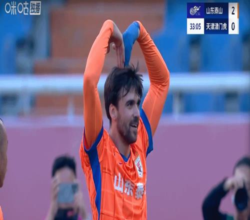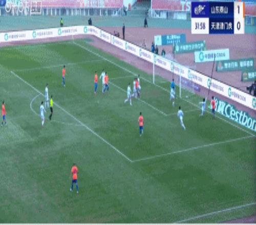 第32分鐘,謝文能右路底線附近傳門前助攻,澤卡頭球再下一城,泰山2-0領(lǐng)先!