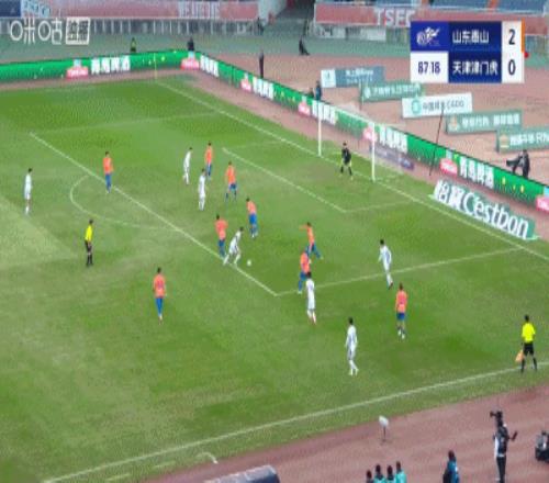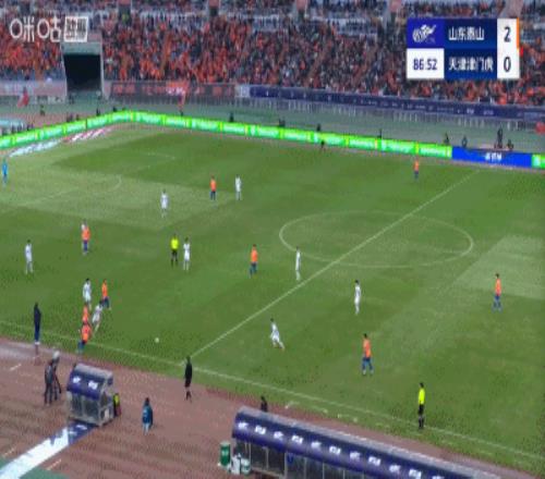 第88分鐘,基萊斯利用個(gè)人能力連續(xù)扣過(guò)多名泰山球員之后射門得手,津門虎扳回一球,1-2!