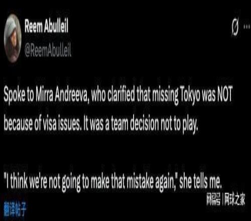 今年奪得兩個1000賽女單冠軍的安德列娃錯失利雅得年終總決賽參賽席位,一直讓很多球迷為之嘆息。此前有消息稱,安德列娃團(tuán)隊(duì)曾試圖參加?xùn)|京賽為參賽席位做最后的爭取,但最終因簽證問題無緣參賽,近日,安德列娃對于這則傳聞進(jìn)行了辟謠。